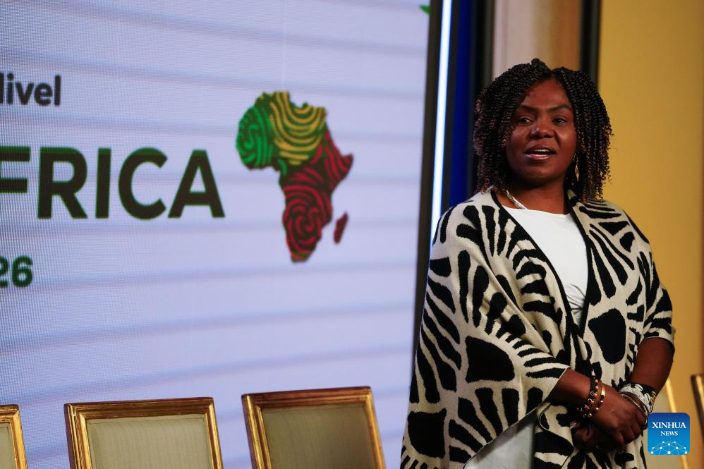 BOGOTA, 23 febrero, 2026 (Xinhua) -- La vicepresidenta colombiana, Francia Márquez, habla durante la conferencia de prensa para presentar el foro de alto nivel entre la Comunidad de Estados Latinoamericanos y Caribeños (CELAC) y Africa, en Bogotá, Colombia, el 23 de febrero de 2026. Con una conferencia de prensa realizada en la Casa de Nariño, sede presidencial de Colombia en Bogotá, el Gobierno colombiano presentó la próxima realización del primer foro de alto nivel entre la CELAC y Africa que tendrá lugar en la capital colombiana entre los días 18 y 21 del mes de marzo. (Xinhua/Andrés Moreno)