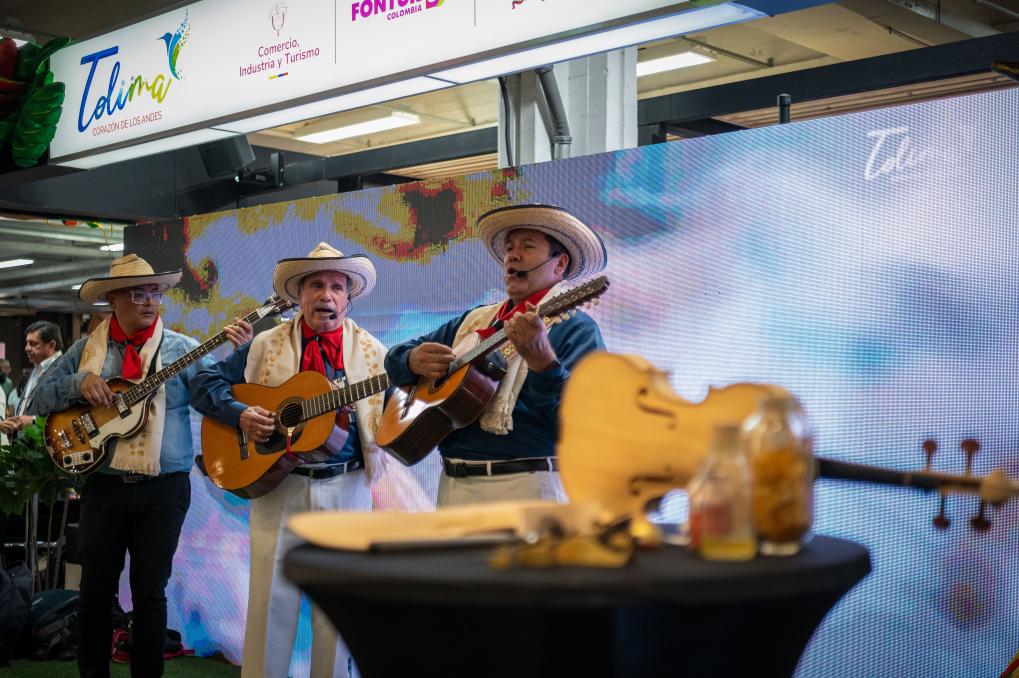 Imagen del 25 de febrero de 2026 de personas interpretando música colombiana durante la 45ª edición de la vitrina turística de la Asociación Colombiana de Agencias de Viajes y de Turismo (ANATO), en Bogotá, capital de Colombia. La 45ª edición de la vitrina turística de ANATO comenzó el miércoles con el Caribe mexicano como región internacional invitada de honor y el departamento colombiano de Córdoba como región nacional destacada. (Xinhua/Andrés Moreno)