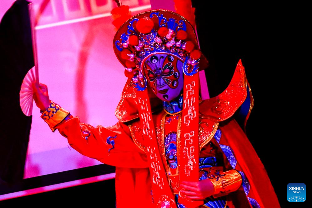 El evento estuvo amenizado con presentaciones de canto, música tradicional y bian lian, o "cambio de rostro", un arte dramático característico de la ópera de Sichuan.