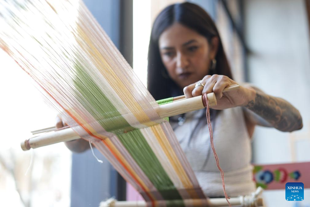 CIUDAD DE MEXICO, 4 marzo, 2026 (Xinhua) -- Imagen del 25 de febrero de 2026 de una mujer realizando un tejido en un taller en el espacio público El Arsenal, en la Ciudad de México, capital de México. México fortalece la formación y la producción cultural con la reciente creación de El Arsenal, un espacio público orientado a la profesionalización en artes y oficios que amplía el acceso a la educación artística, mediante un modelo flexible con un enfoque basado en la experimentación, la creación colectiva y el intercambio de saberes. (Xinhua/Francisco Cañedo)