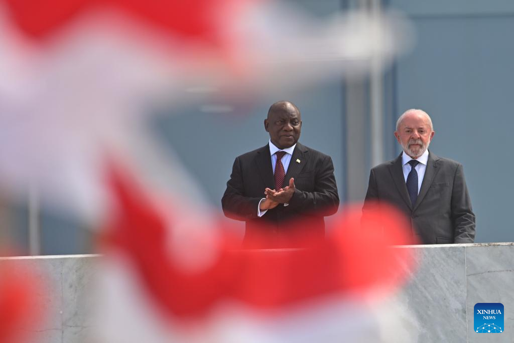 BRASILIA, 9 marzo, 2026 (Xinhua) -- El presidente sudafricano, Cyril Ramaphosa (d), pasa revista a la guardia de honor a su llegada para una reunión con el presidente brasileño, Luiz Inácio Lula da Silva en el Palacio de Planalto, en Brasilia, Brasil, el 9 de marzo de 2026. (Xinhua/Lucio Tavora)