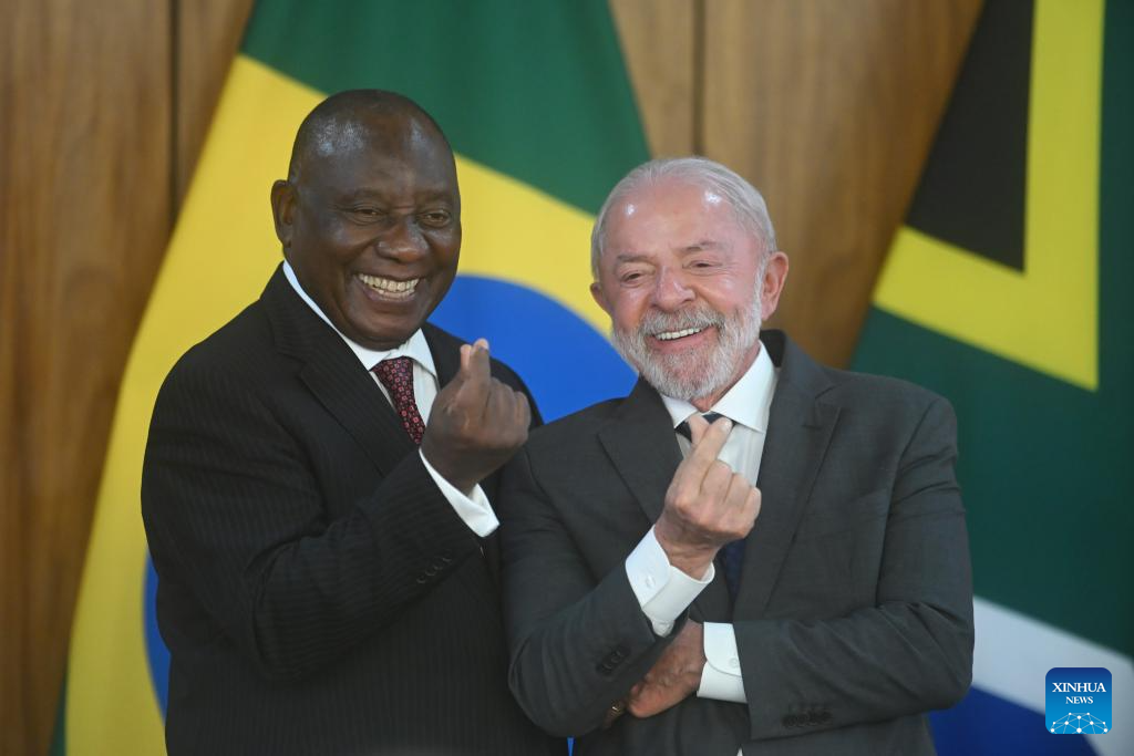 BRASILIA, 9 marzo, 2026 (Xinhua) -- El presidente brasileño, Luiz Inácio Lula da Silva (d), y el presidente sudafricano, Cyril Ramaphosa (i), asisten a una ceremonia de bienvenida previo al inicio de su reunión bilateral en el Palacio de Planalto, en Brasilia, Brasil, el 9 de marzo de 2026. (Xinhua/Lucio Tavora)
