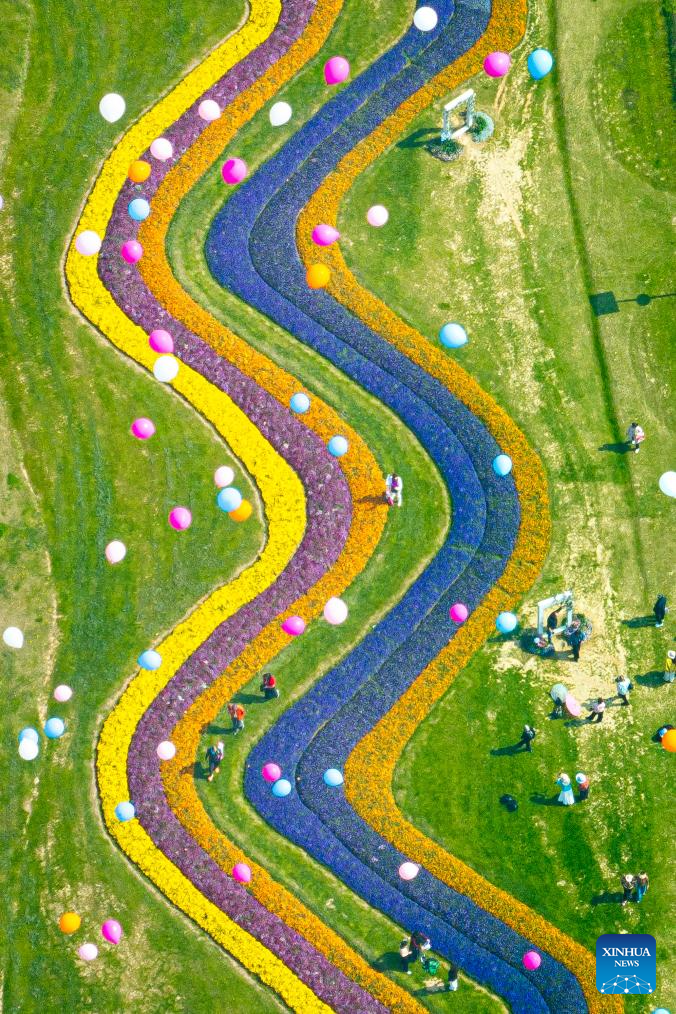 BEIJING, 14 marzo, 2026 (Xinhua) -- Vista aérea tomada con un dron el 14 de marzo de 2026 de personas observando flores en el área escénica de Qingxiushan, en Nanning, en la región autónoma zhuang de Guangxi, en el sur de China. (Xinhua/Zhou Hua)