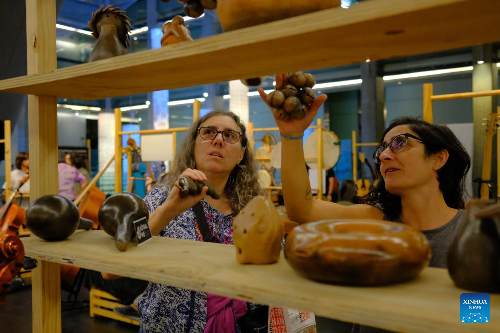 BUENOS AIRES, 15 marzo, 2026 (Xinhua) -- Imagen del 14 de marzo de 2026 de un artesano probando un instrumento musical durante una feria de instrumentos musicales celebrada en el Palacio Libertad, en Buenos Aires, Argentina. (Xinhua/Zhang Duo)