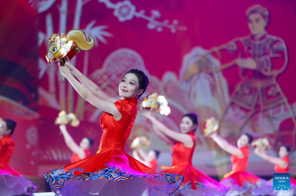 TIANJIN, 25 marzo, 2026 (Xinhua) -- Artistas realizan una presentación durante la ceremonia de inauguración del X Campeonato Mundial Junior de Wushu, en Tianjin, en el norte de China, el 25 de marzo de 2026. (Xinhua/Sun Fanyue)