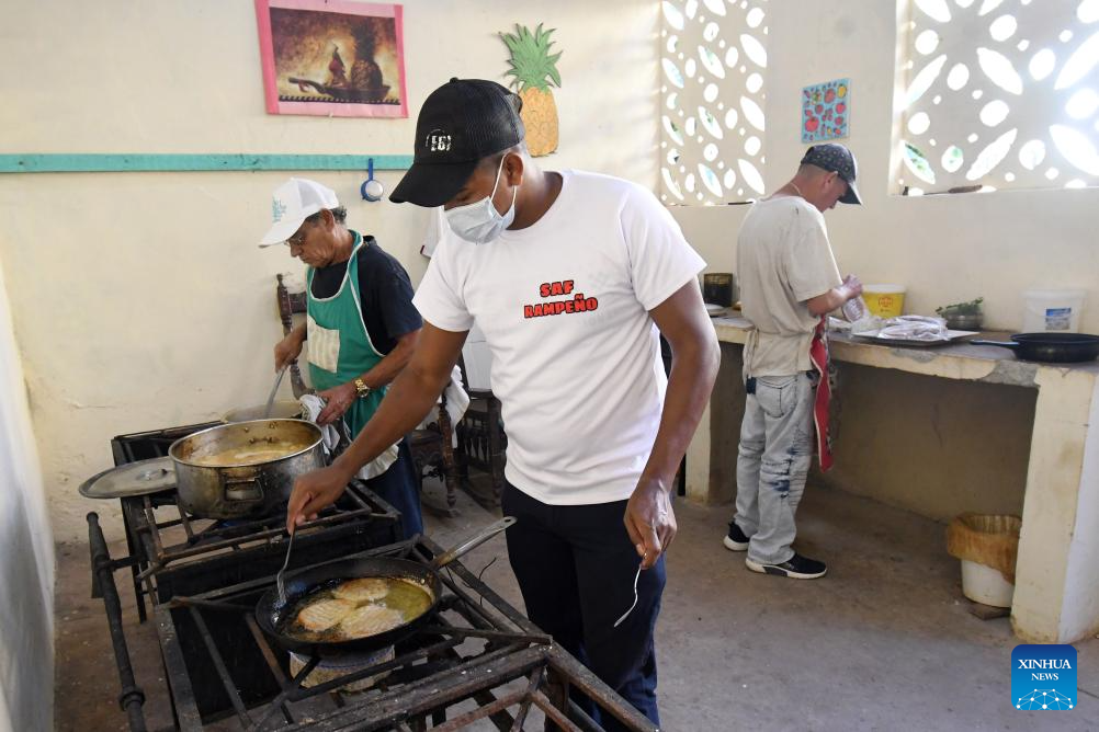 Imagen del 25 de marzo de 2026 de empleados de cocina elaborando alimentos en el centro "El Rampeño", en el municipio Plaza de la Revolución, en La Habana, capital de Cuba. En el municipio Plaza de la Revolución, en La Habana, Cuba, el centro "El Rampeño", parte del Sistema de Atención a la Familia, atiende diariamente a más de 70 ancianos y personas con discapacidad, manteniendo sus puertas abiertas pese a la aguda crisis de combustible que enfrenta la isla. (Xinhua/Joaquín Hernández)