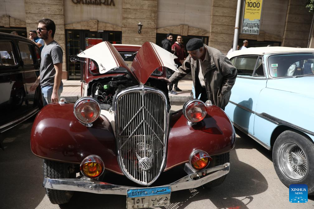 El CAIRO, 3 abril, 2026 (Xinhua) -- Personas visitan una exposición de automóviles antiguos, en El Cairo, Egipto, el 3 de abril de 2026. Decenas de automóviles antiguos y raros recorrieron el viernes el centro de El Cairo, la capital de Egipto, convirtiendo las calles históricas en un museo viviente y ofreciendo un nostálgico homenaje a la época dorada del diseño automovilístico. (Xinhua/Ahmed Gomaa)