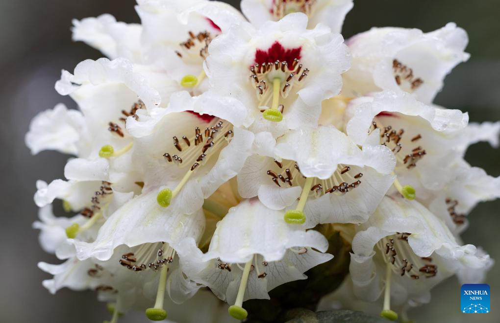 CHENGDU, 9 abril, 2026 (Xinhua) -- Imagen del 8 de abril de 2026 de ejemplares de gran rododendro chino florecientes en el Jardín Botánico Subalpino del Oeste de China, en Chengdu, en la provincia de Sichuan, en el suroeste de China. Un lote de ejemplares de gran rododendro chino, una especie de rododendro alpino, floreció recientemente por primera vez aquí después de 29 años de cultivo artificial. (Xinhua/Jiang Hongjing)