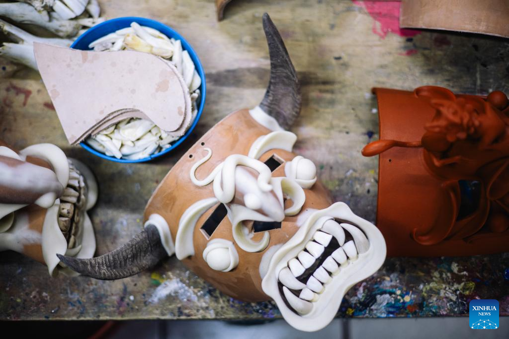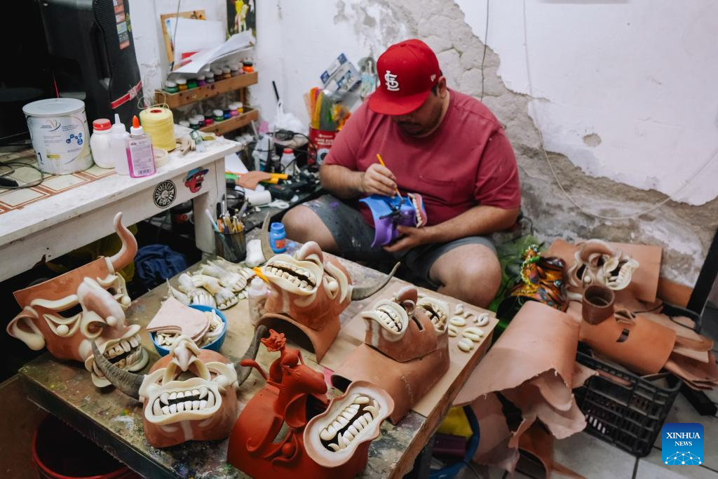 Imagen del 4 de abril de 2026 de una máscara de tastoán elaborada por maestro artesano Norberto Alonso Lucano Suárez, en el municipio de Tonalá, en el estado de Jalisco, México. Simbolismo, arte e historia confluyen en las máscaras de tastoán, expresión representativa de la identidad indígena en México, en particular, en el municipio de Tonalá, en el estado de Jalisco (centro), donde esa tradición se mantiene vigente gracias al trabajo de talentosos artesanos. (Xinhua/Miriam Jiménez)