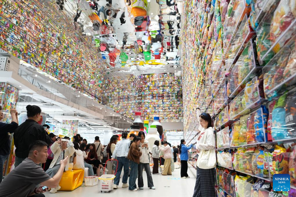 CHANGSHA, 17 abril, 2026 (Xinhua) -- Una persona se toma una fotografía en una gran tienda de bocadillos, en Changsha, en la provincia de Hunan, en el centro de China, el 17 de abril de 2026. Una tienda de gran tamaño de bocadillos con una superficie de 12.000 metros cuadrados abrió en Changsha el viernes. Con más de 6.500 marcas y más de 35.000 productos, el establecimiento ofrece a los consumidores una experiencia de exploración que integra compras, interacción en redes sociales y actividades interactivas. (Xinhua/Chen Zhenhai)