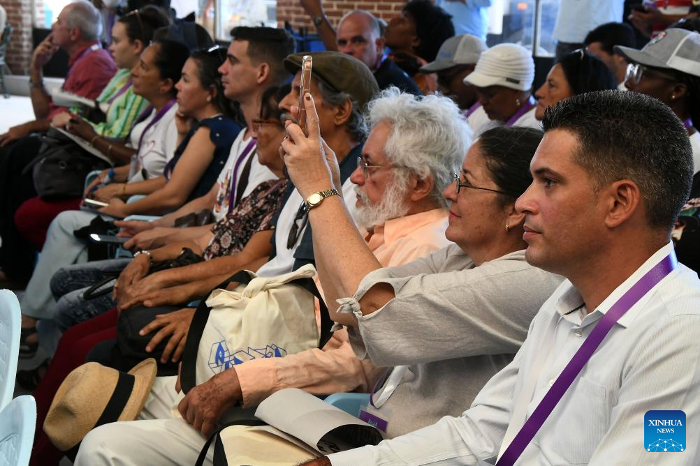 Imagen del 16 de abril de 2026 de invitados participando en el V Coloquio Internacional Patria, en La Habana, capital de Cuba. La guerra mediática que despliega Estados Unidos contra Cuba y las naciones del Sur Global ha sido denunciada por activistas que asisten al V Coloquio Internacional Patria, que se realiza hasta el sábado en la capital cubana para discutir sobre comunicación política. (Xinhua/Joaquín Hernández)