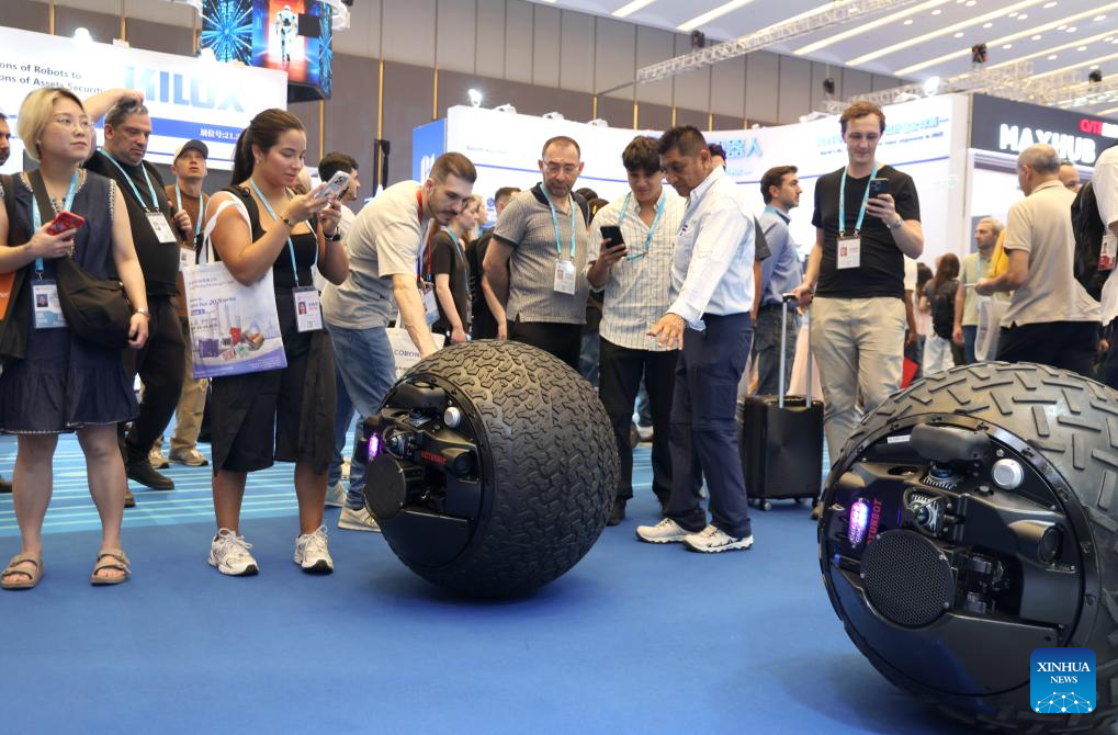 GUANGZHOU, 17 abril, 2026 (Xinhua) -- Imagen del 15 de abril de 2026 de visitantes observando un robot de limpieza con paneles fotovoltaicos en la edición número 139 de la Feria de Importación y Exportación de China, en Guangzhou, en la provincia de Guangdong, en el sur de China. La edición número 139 de la Feria de Importación y Exportación de China, también conocida como la Feria de Cantón, se inauguró aquí el miércoles. En el evento se ha habilitado un área de exposición para robots de servicio, que reúne a 46 empresas para mostrar las innovaciones tecnológicas y las capacidades de aplicación del sector de los robots de servicio de China.(Xinhua/Lu Hanxin)