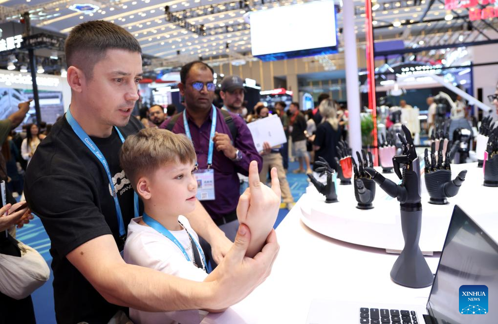 GUANGZHOU, 17 abril, 2026 (Xinhua) -- Imagen del 15 de abril de 2026 de visitantes interactuando con una mano biónica en la edición número 139 de la Feria de Importación y Exportación de China, en Guangzhou, en la provincia de Guangdong, en el sur de China. La edición número 139 de la Feria de Importación y Exportación de China, también conocida como la Feria de Cantón, se inauguró aquí el miércoles. En el evento se ha habilitado un área de exposición para robots de servicio, que reúne a 46 empresas para mostrar las innovaciones tecnológicas y las capacidades de aplicación del sector de los robots de servicio de China. (Xinhua/Lu Hanxin)
