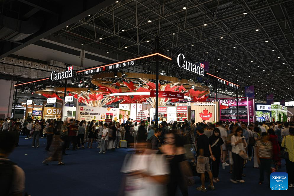 HAIKOU, 17 abril, 2026 (Xinhua) -- Imagen del 16 de abril de 2026 de personas visitando el pabellón de Canadá, país invitado de honor de la sexta Exposición Internacional de Productos de Consumo de China (CICPE, por sus siglas en inglés), en Haikou, en la provincia de Hainan, en el sur de China. La sexta CICPE, abierta al público del jueves al sábado, ha atraído a un gran número de residentes locales y turistas. (Xinhua/Pu Xiaoxu)