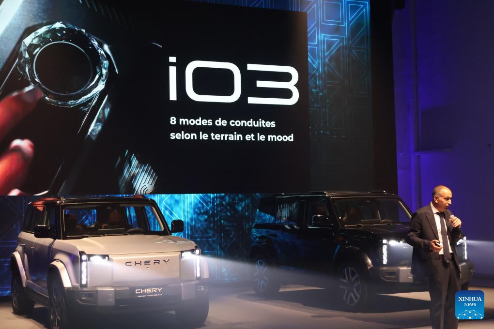 TUNEZ, 17 abril, 2026 (Xinhua) -- Imagen del 16 de abril de 2026 de una escena del evento de lanzamiento del nuevo automóvil de Chery, en Túnez, Túnez. El fabricante de automóviles chino Chery presentó el i03, su primer vehículo totalmente eléctrico en Túnez, durante el evento de lanzamiento llevado a cabo el jueves. (Xinhua/Zhou Haojin)