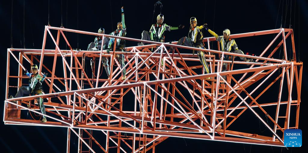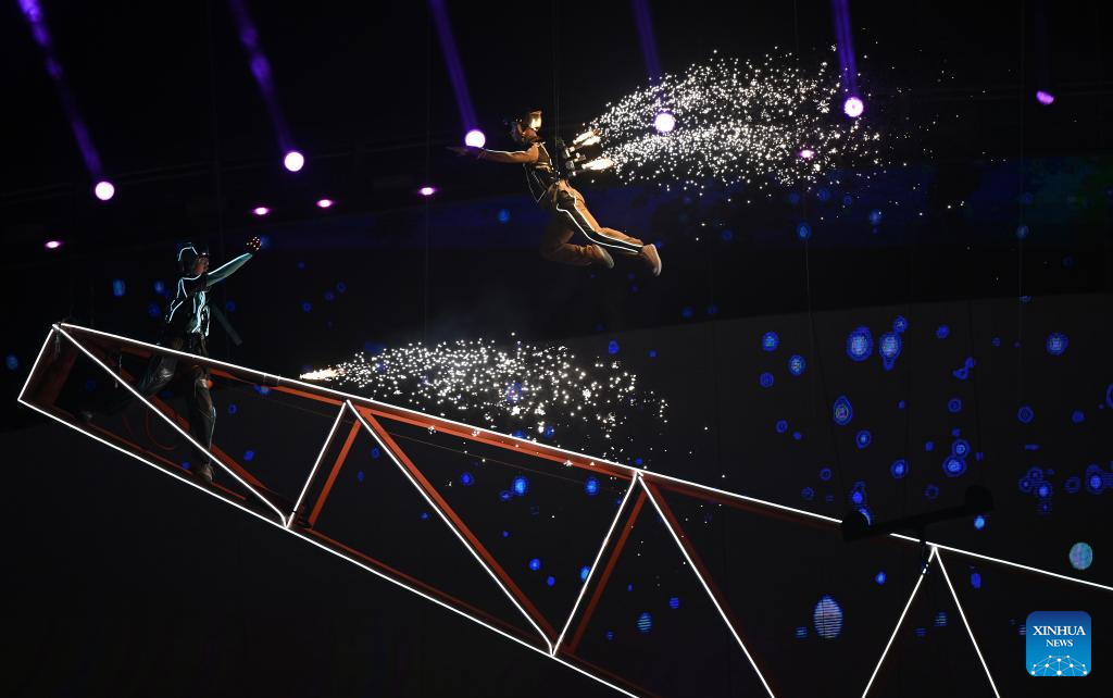 SANYA, 22 abril, 2026 (Xinhua) -- Artistas realizan una presentación durante la ceremonia de apertura de los VI Juegos Asiáticos de Playa, en Sanya, en la provincia de Hainan, en el sur de China, el 22 de abril de 2026. (Xinhua/Pan Yulong)