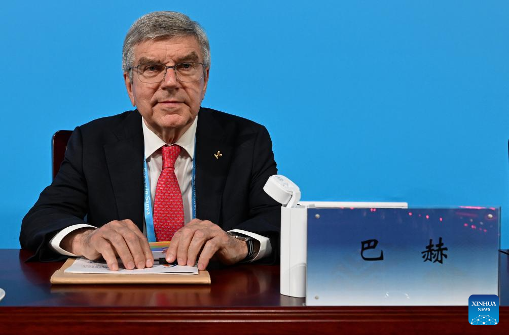 SANYA, 22 abril, 2026 (Xinhua) -- El presidente honorario vitalicio del Comité Olímpico Internacional, Thomas Bach, es visto durante la ceremonia de apertura de los VI Juegos Asiáticos de Playa, en Sanya, en la provincia de Hainan, en el sur de China, el 22 de abril de 2026. (Xinhua/Yang Guanyu)