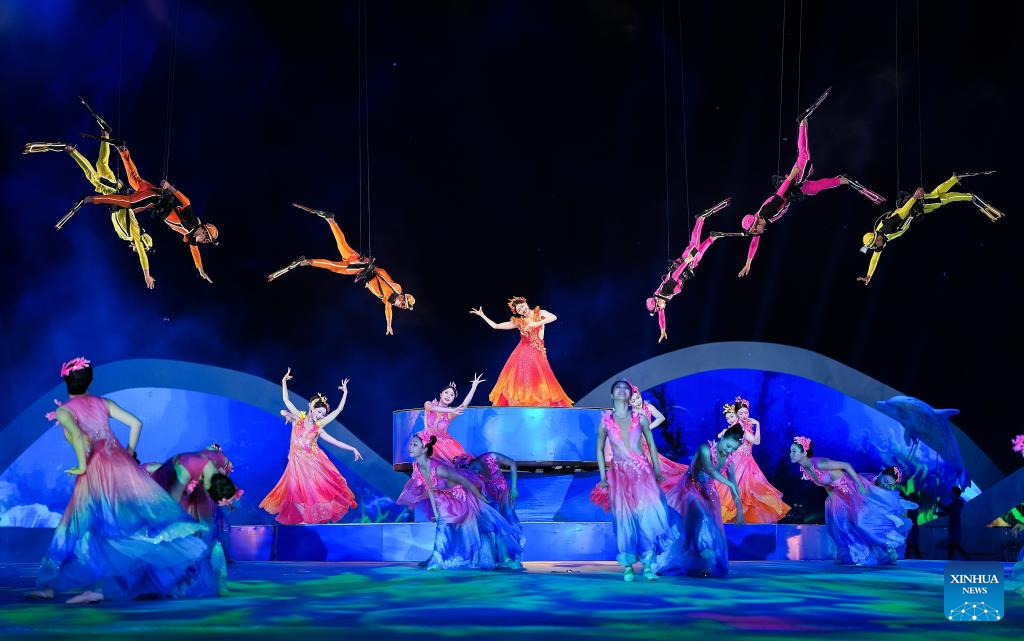 SANYA, 22 abril, 2026 (Xinhua) -- Artistas realizan una presentación durante la ceremonia de apertura de los VI Juegos Asiáticos de Playa, en Sanya, en la provincia de Hainan, en el sur de China, el 22 de abril de 2026. (Xinhua/Yang Guanyu)