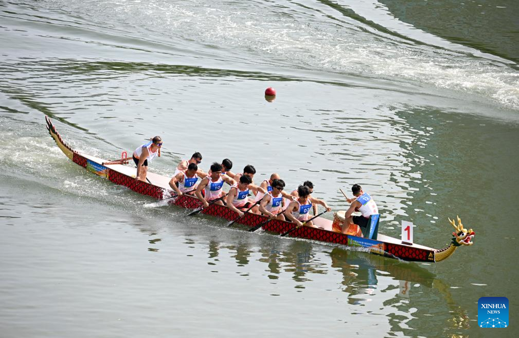 SANYA, 25 abril, 2026 (Xinhua) -- El equipo de China compite durante la gran final de la carrera de 200 m en línea recta masculina para botes pequeños del evento de botes del dragón en los VI Juegos Asiáticos de Playa, en Sanya, en la provincia de Hainan, en el sur de China, el 25 de abril de 2026. (Xinhua/Yang Guanyu)