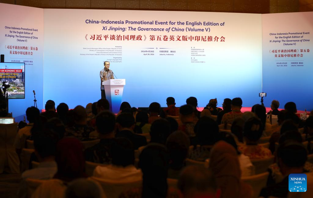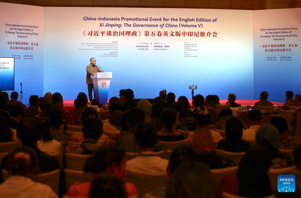 YAKARTA, 28 abr (Xinhua) -- Este martes se celebró en Yakarta, capital de Indonesia, un acto promocional de la edición en inglés del quinto volumen del libro "Xi Jinping: La gobernanza y administración de China".