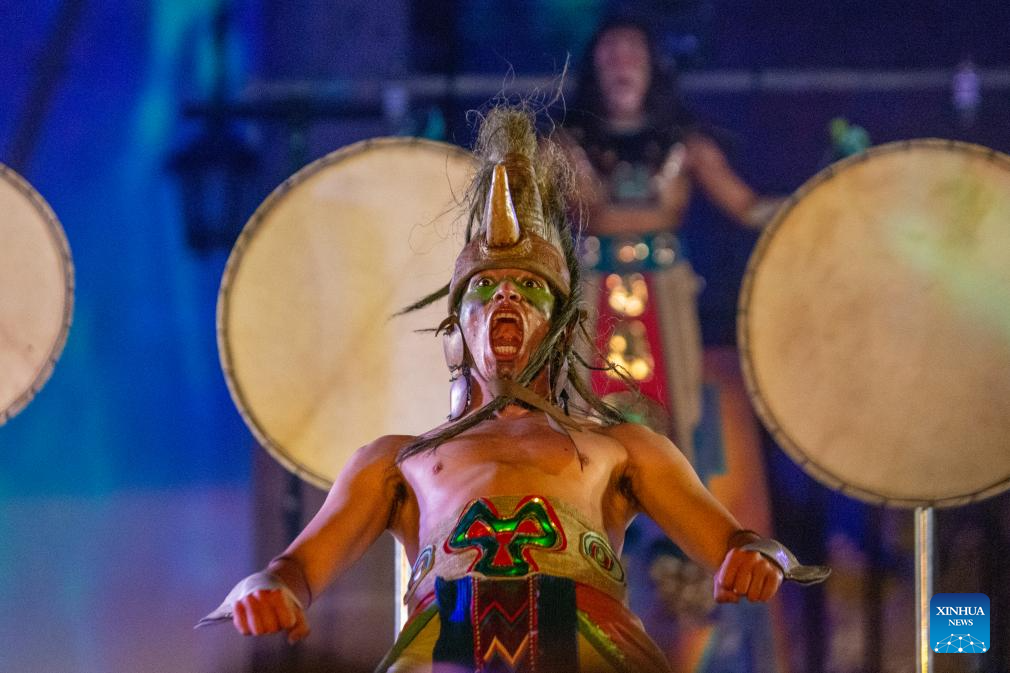 Imagen del 26 de abril de 2026 de artistas participando en el espectáculo Kopalli: El Espíritu Astral durante la novena edición del Festival GDLuz 2026, en la ciudad de Guadalajara, en el estado de Jalisco, México. Durante cuatro jornadas, el Centro Histórico de Guadalajara dejó atrás su rutina habitual para convertirse en un vasto escenario de luz, música y tradición, en el que más de un millón de personas recorrieron sus calles para disfrutar de una de las celebraciones culturales más emblemáticas de México. (Xinhua/Miriam Jiménez)