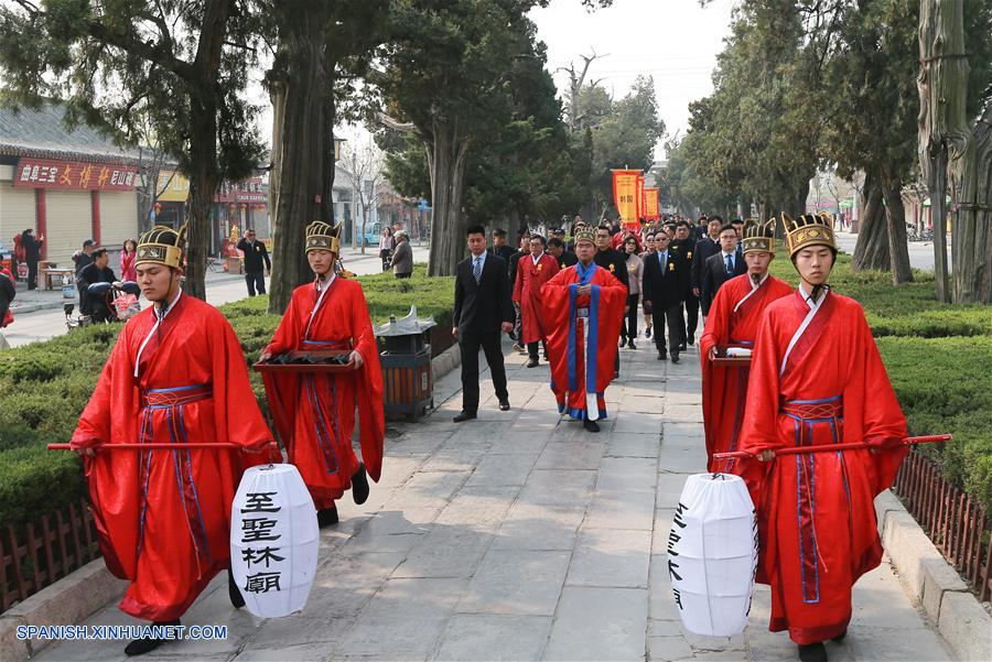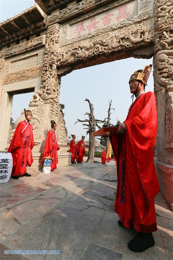 JINAN, 5 abr (Xinhua) -- Los descendientes del filósofo chino Confucio realizaron hoy viernes una ceremonia conmemorativa en honor de su ancestro y todo el proceso fue transmitido en vivo a través de los medios de comunicación chinos.