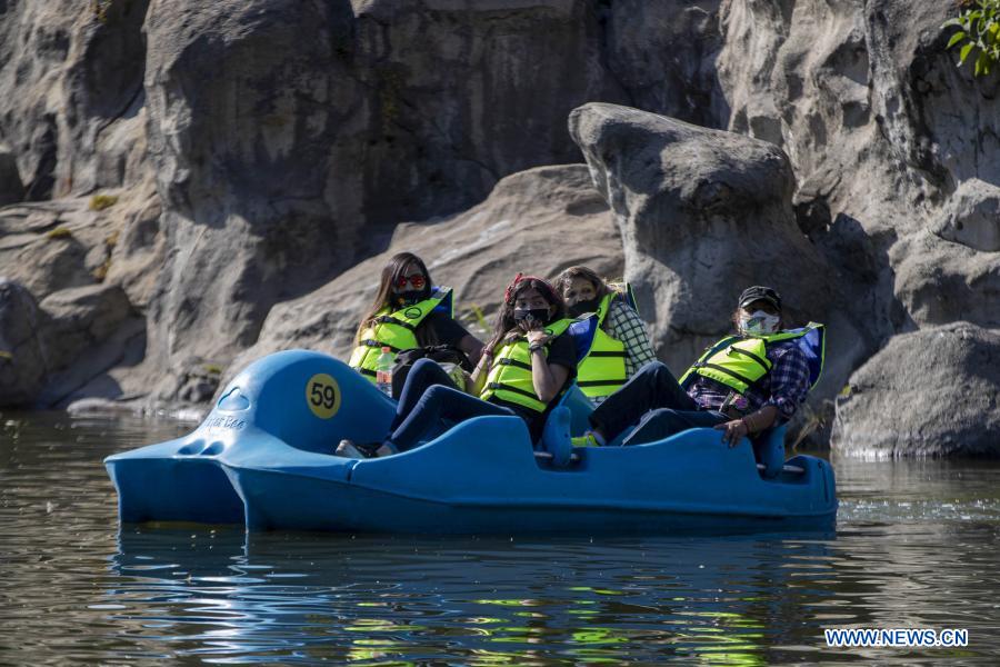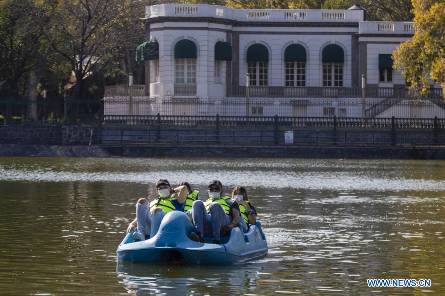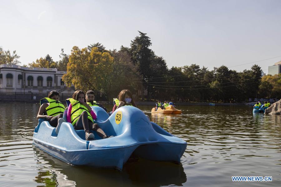 CIUDAD DE MEXICO, 27 noviembre, 2020 (Xinhua) -- Personas disfrutan de su tiempo libre a bordo de una lancha en el lago del Bosque de Chapultepec, en la Ciudad de México, capital de México, el 27 de noviembre de 2020. (Xinhua/Ricardo Flores)