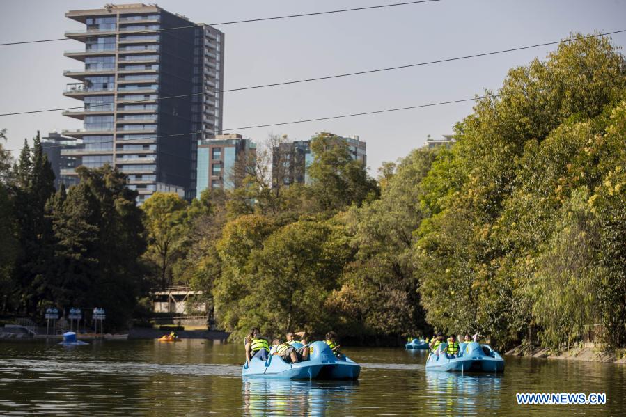 CIUDAD DE MEXICO, 27 noviembre, 2020 (Xinhua) -- Personas disfrutan de su tiempo libre a bordo de lanchas en el lago del Bosque de Chapultepec, en la Ciudad de México, capital de México, el 27 de noviembre de 2020. (Xinhua/Ricardo Flores)