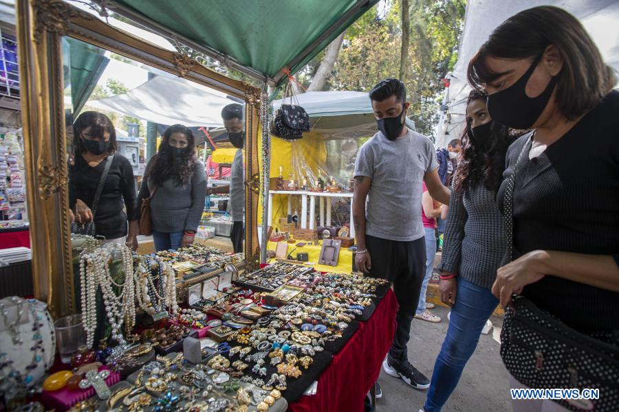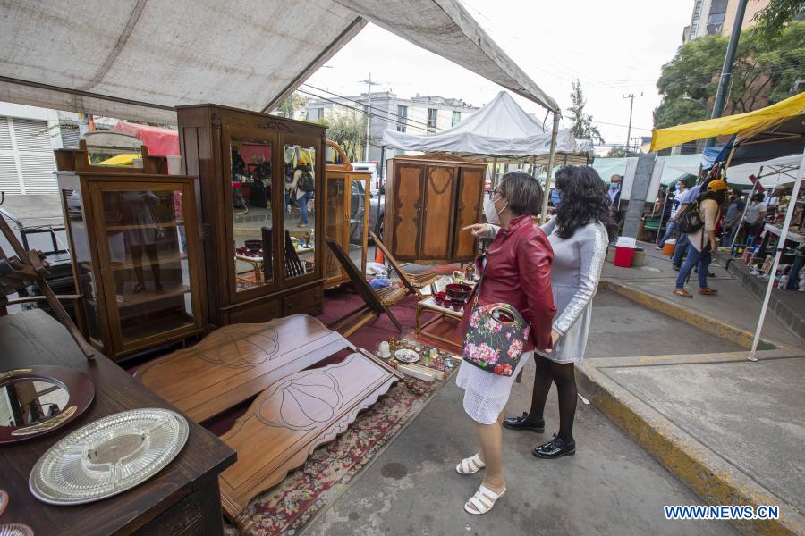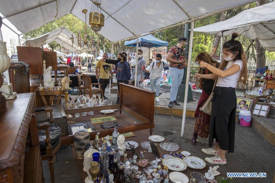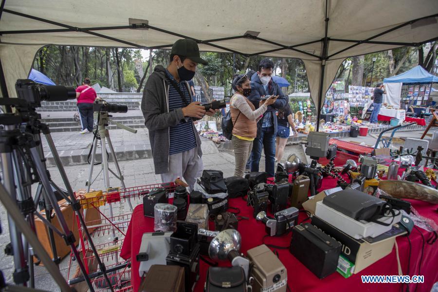 CIUDAD DE MEXICO, 6 diciembre, 2020 (Xinhua) -- Personas observan antigüedades en un bazar, en el Jardín Dr. Ignacio Chávez, en la Ciudad de México, capital de México, el 6 de diciembre de 2020. (Xinhua/Ricardo Flores)
