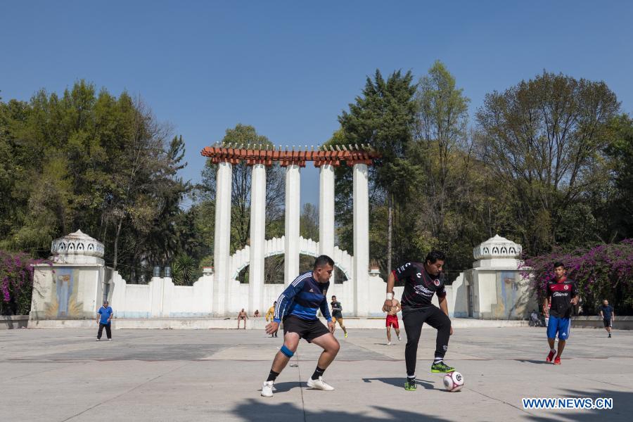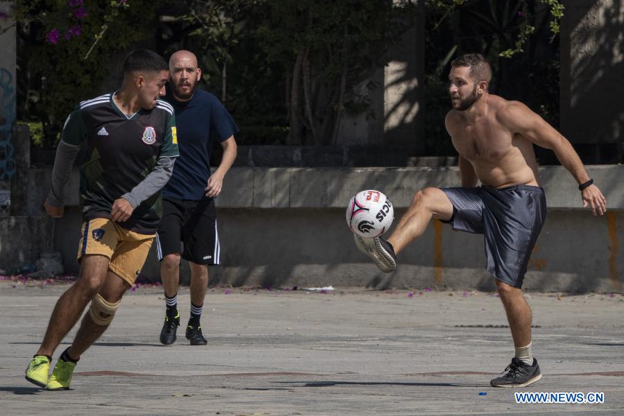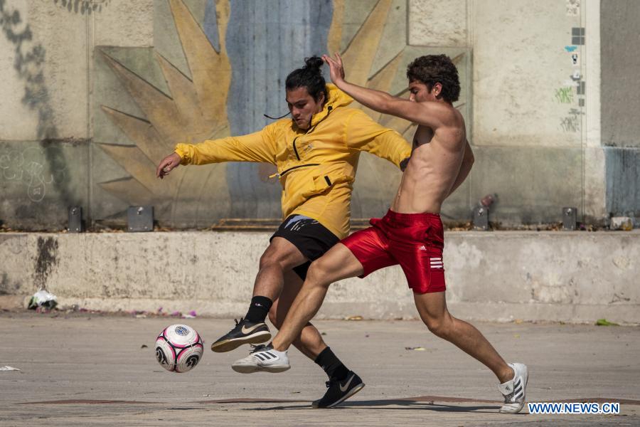 CIUDAD DE MEXICO, 11 diciembre, 2020 (Xinhua) -- Personas juegan fútbol en un parque, en la Ciudad de México, capital de México, el 11 de diciembre de 2020. (Xinhua/Luis Licona)