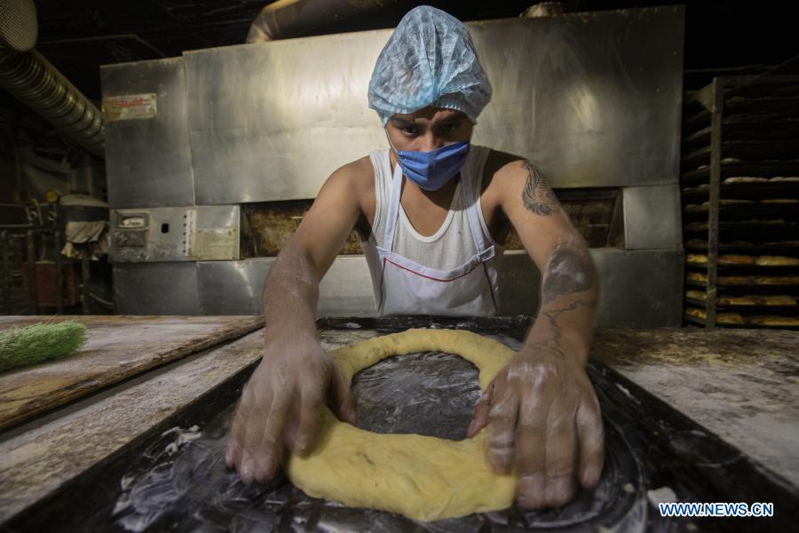 CIUDAD DE MEXICO, 3 enero, 2021 (Xinhua) -- Panaderos elaboran las tradicionales "Roscas de Reyes" en la panadería El Biscocho Feliz, en la Ciudad de México, capital de México, el 3 de enero de 2021. Según la tradición mexicana, cada miembro de la familia corta un pedazo de la rosca para degustarlo; sin embargo, las personas que encuentren los muñecos que están escondidos en la rosca, ofrecerán tamales y atole el próximo 2 de febrero, en la celebración del Día de la Candelaria en México. (Xinhua/Ricardo Flores)