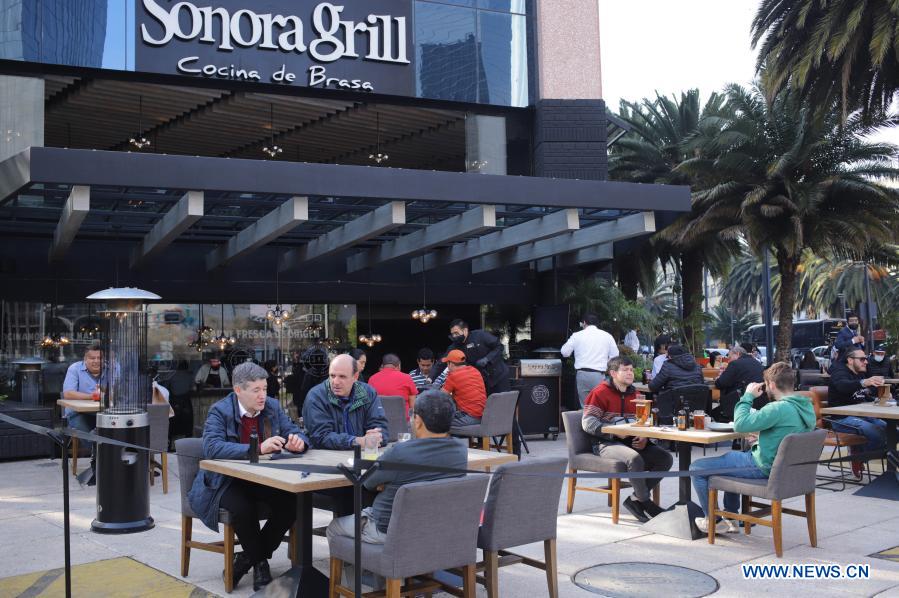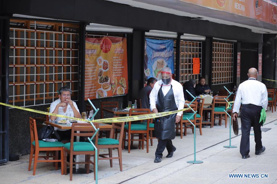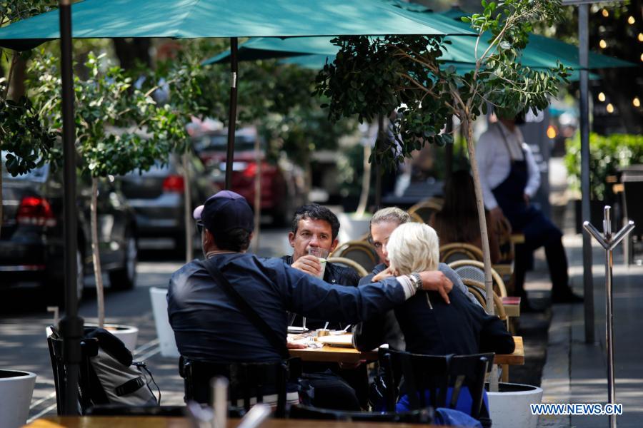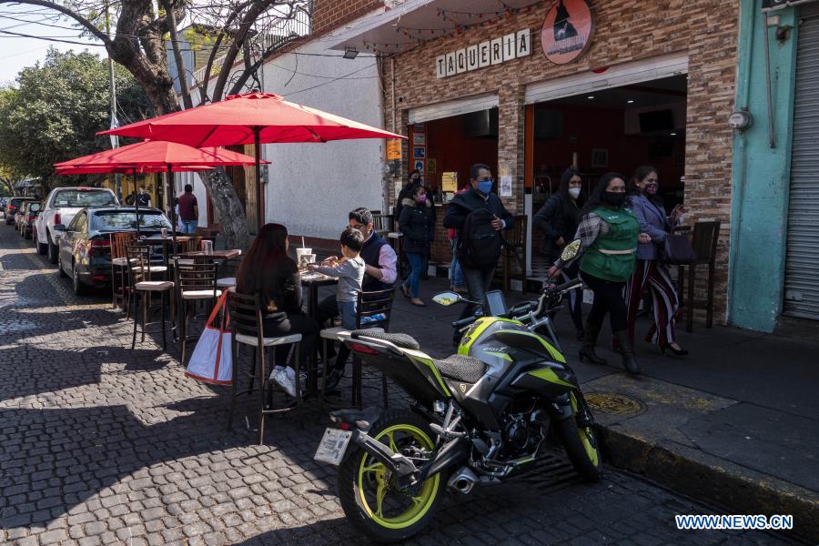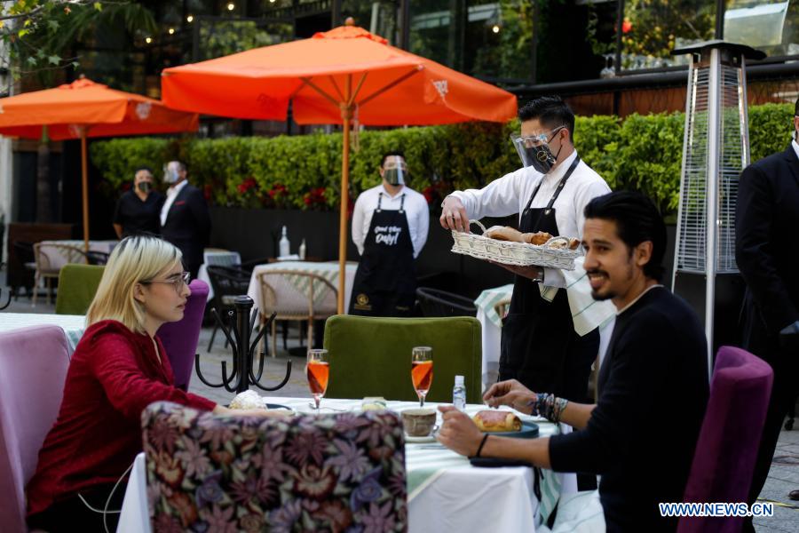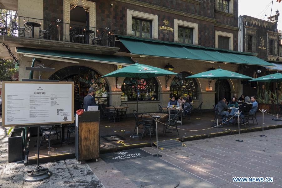 CIUDAD DE MEXICO, 18 enero, 2021 (Xinhua) -- Comensales disfrutan de sus alimentos en la terraza de un restaurante reabierto, en la Ciudad de México, capital de México, el 18 de enero de 2021. (Xinhua/Francisco Cañedo)
