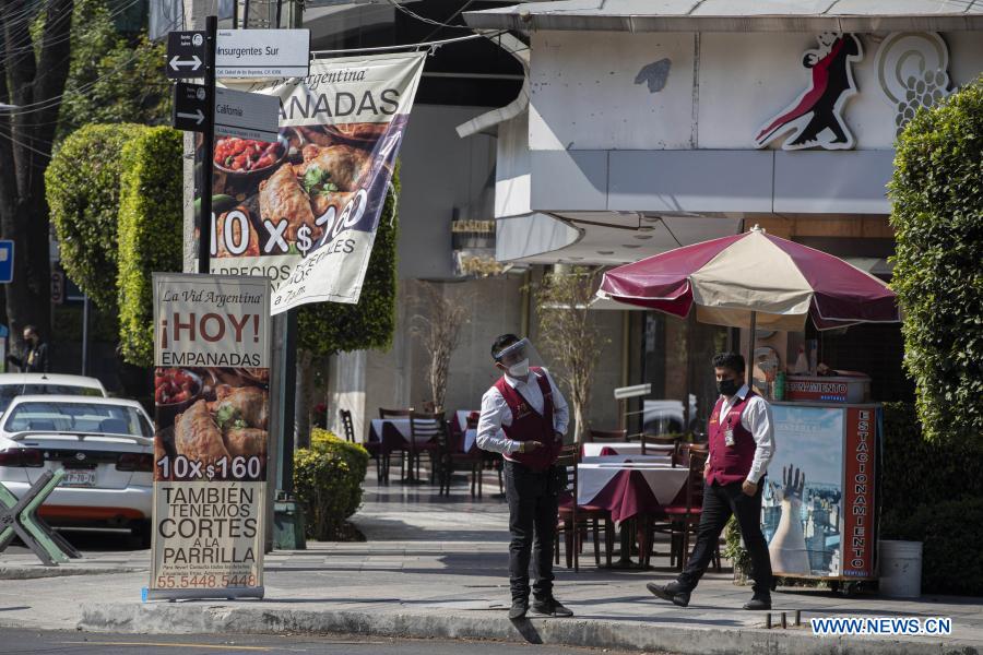 CIUDAD DE MEXICO, 18 enero, 2021 (Xinhua) -- Meseros esperan por comensales en un restaurante reabierto, en la Ciudad de México, capital de México, el 18 de enero de 2021. (Xinhua/Ricardo Flores)