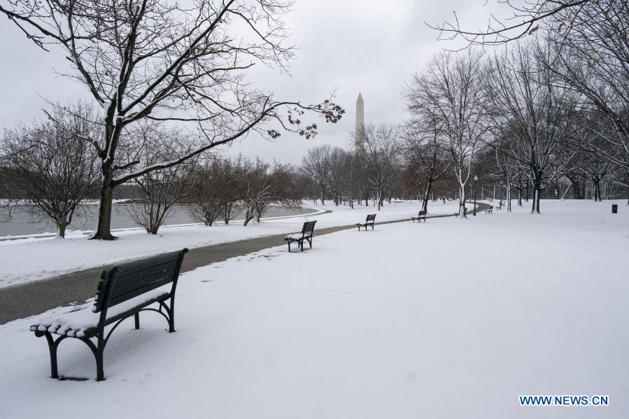 WASHINGTON D.C., 2 febrero, 2021 (Xinhua) -- Imagen del 2 de febrero de 2021 del paisaje nevado en el National Mall, en Washington D.C., Estados Unidos. (Xinhua/Liu Jie)