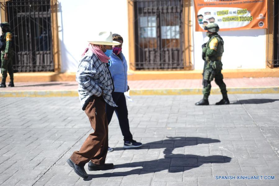 TLAXCALA, 16 febrero, 2021 (Xinhua) -- José Francisco Severiano Alonso Sangrador (frente), de 87 años, regresa a su casa acompañado de su nieta después de recibir una vacuna contra la enfermedad del nuevo coronavirus (COVID-19), en Tlaxcala, México, el 16 de febrero de 2021. José Francisco, originario de la comunidad indígena de Ixtenco, en el estado mexicano de Tlaxcala, y quien trabajó por más de 60 años como agricultor, tiene 4 hijos, dos de ellos con discapacidad visual, y nueve nietas. El martes acudió en compañía de su nieta a un centro de vacunación cerca de su casa para recibir su primera dosis de una vacuna contra la COVID-19 y se esperó media hora en el lugar sin reportar algún tipo de reacción alérgica. México inició el lunes la vacunación contra la COVID-19 en adultos mayores de 60 años en un total de 333 municipios de alta marginación, informó la Secretaría de Salud. (Xinhua/Jesús Alvarado)
