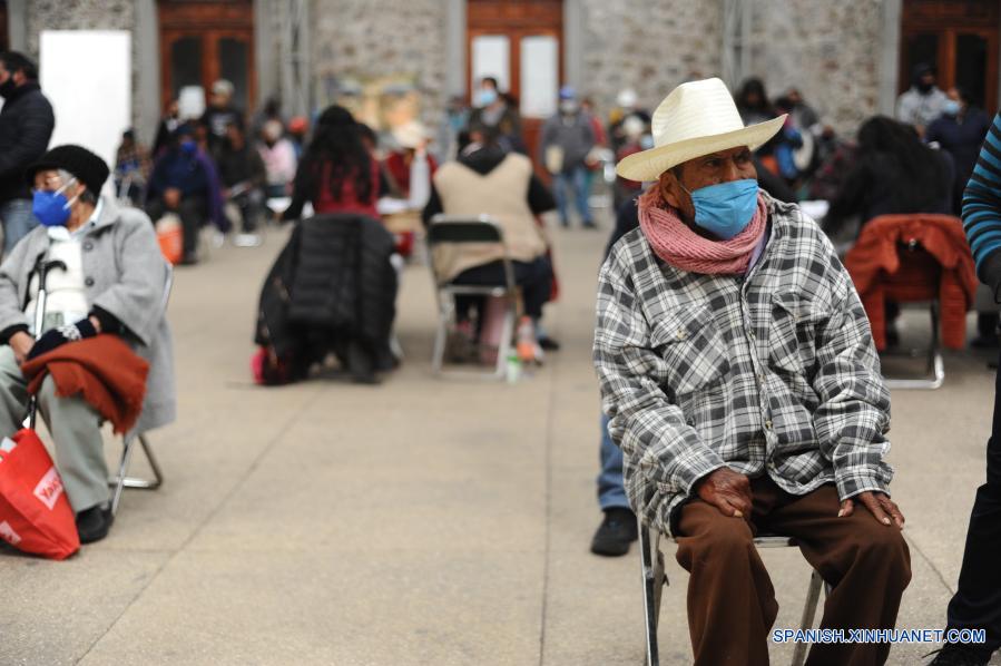 TLAXCALA, 16 febrero, 2021 (Xinhua) -- Personas esperan para recibir una vacuna contra la enfermedad del nuevo coronavirus (COVID-19), en Tlaxcala, México, el 16 de febrero de 2021. José Francisco, originario de la comunidad indígena de Ixtenco, en el estado mexicano de Tlaxcala, y quien trabajó por más de 60 años como agricultor, tiene 4 hijos, dos de ellos con discapacidad visual, y nueve nietas. El martes acudió en compañía de su nieta a un centro de vacunación cerca de su casa para recibir su primera dosis de una vacuna contra la COVID-19 y se esperó media hora en el lugar sin reportar algún tipo de reacción alérgica. México inició el lunes la vacunación contra la COVID-19 en adultos mayores de 60 años en un total de 333 municipios de alta marginación, informó la Secretaría de Salud. (Xinhua/Jesús Alvarado)