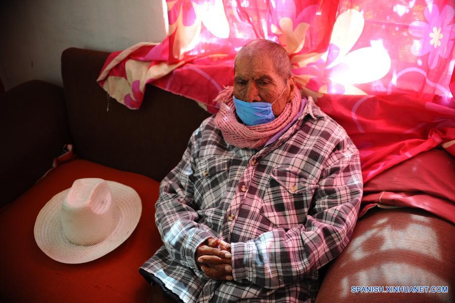 TLAXCALA, 16 febrero, 2021 (Xinhua) -- José Francisco Severiano Alonso Sangrador, de 87 años, espera a su nieta para acudir a recibir una vacuna contra la enfermedad del nuevo coronavirus (COVID-19), en Tlaxcala, México, el 16 de febrero de 2021. José Francisco, originario de la comunidad indígena de Ixtenco, en el estado mexicano de Tlaxcala, y quien trabajó por más de 60 años como agricultor, tiene 4 hijos, dos de ellos con discapacidad visual, y nueve nietas. El martes acudió en compañía de su nieta a un centro de vacunación cerca de su casa para recibir su primera dosis de una vacuna contra la COVID-19 y se esperó media hora en el lugar sin reportar algún tipo de reacción alérgica. México inició el lunes la vacunación contra la COVID-19 en adultos mayores de 60 años en un total de 333 municipios de alta marginación, informó la Secretaría de Salud. (Xinhua/Jesús Alvarado)