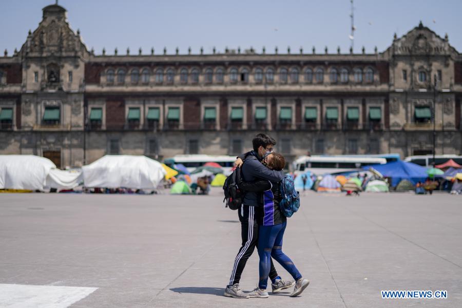 CIUDAD DE MEXICO, 3 marzo, 2021 (Xinhua) -- Una pareja se abraza frente a Palacio Nacional en el Centro Histórico, en la Ciudad de México, capital de México, el 3 de marzo de 2021. (Xinhua/Luis Licona)