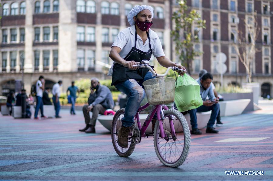 CIUDAD DE MEXICO, 3 marzo, 2021 (Xinhua) -- Una persona monta una bicicleta por una calle del Centro Histórico, en la Ciudad de México, capital de México, el 3 de marzo de 2021. (Xinhua/Luis Licona)