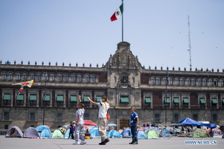 CIUDAD DE MEXICO, 3 marzo, 2021 (Xinhua) -- Niños vuelan un papalote en la Plaza de la Constitución en el Centro Histórico, en la Ciudad de México, capital de México, el 3 de marzo de 2021. (Xinhua/Luis Licona)