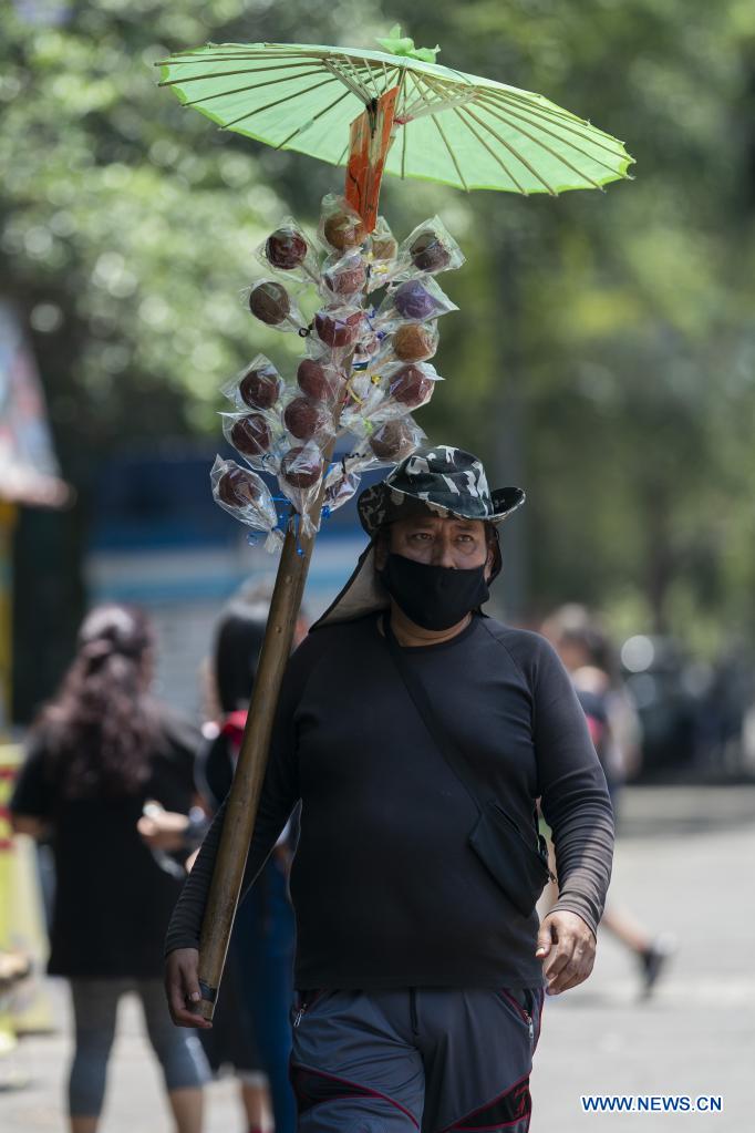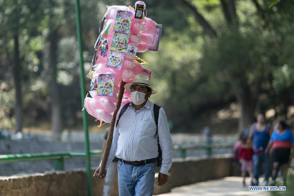 CIUDAD DE MEXICO, 18 abril, 2021 (Xinhua) -- Un vendedor camina por el Parque Nacional Fuentes Brotantes, en la Ciudad de México, capital de México, el 18 de abril de 2021. (Xinhua/Luis Licona)