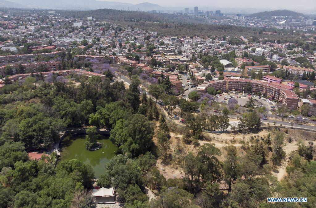 CIUDAD DE MEXICO, 18 abril, 2021 (Xinhua) -- Imagen tomada con un dron del Parque Nacional Fuentes Brotantes, en la Ciudad de México, capital de México, el 18 de abril del 2021. (Xinhua/Luis Licona)