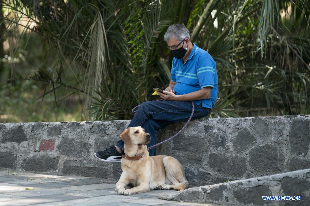 CIUDAD DE MEXICO, 18 abril, 2021 (Xinhua) -- Un hombre revisa su teléfono móvil en el Parque Nacional Fuentes Brotantes, en la Ciudad de México, capital de México, el 18 de abril de 2021. (Xinhua/Luis Licona)