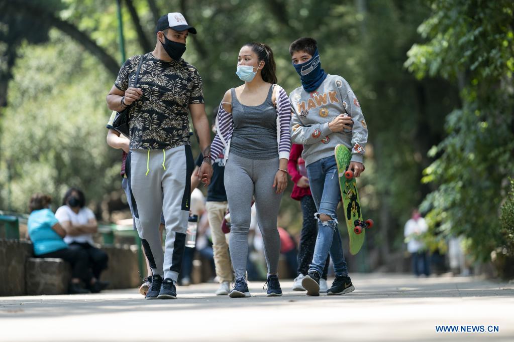 CIUDAD DE MEXICO, 18 abril, 2021 (Xinhua) -- Personas visitan el Bosque de Chapultepec, en la Ciudad de México, capital de México, el 18 de abril de 2021. (Xinhua/Quetzali Blanco)