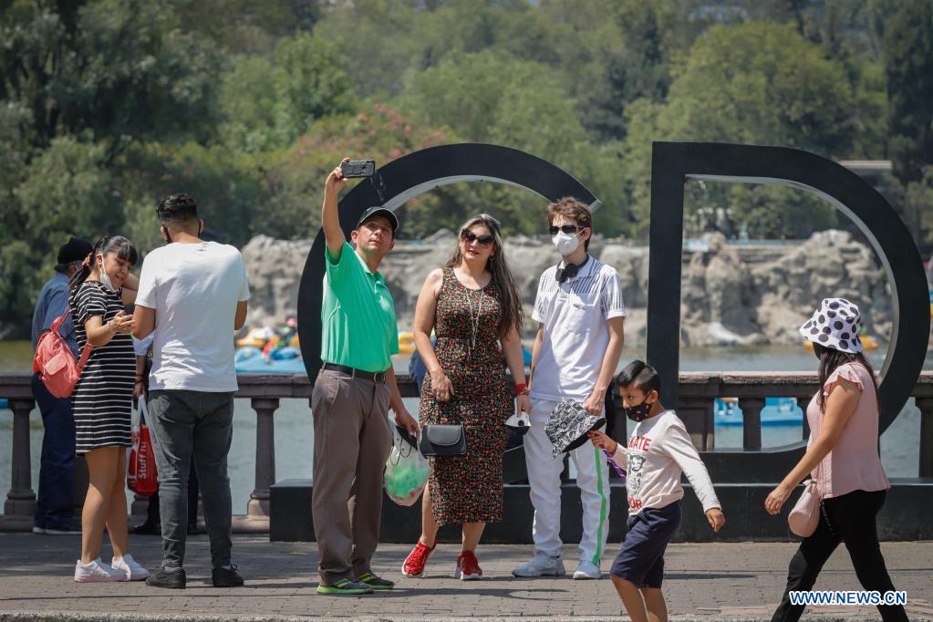 CIUDAD DE MEXICO, 18 abril, 2021 (Xinhua) -- Personas se toman fotografías en el Bosque de Chapultepec, en la Ciudad de México, capital de México, el 18 de abril de 2021. (Xinhua/Quetzali Blanco)