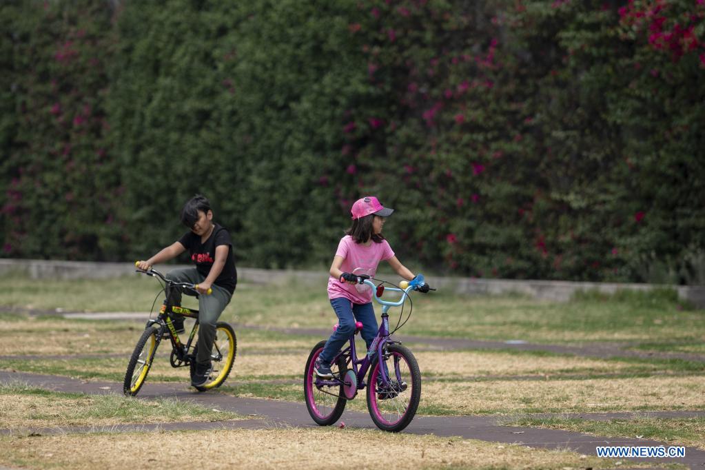 CIUDAD DE MEXICO, 30 abril, 2021 (Xinhua) -- Niños montan bicicletas en el marco del Día del Niño, en la Ciudad de México, capital de México, el 30 de abril de 2021. (Xinhua/Luis Licona)