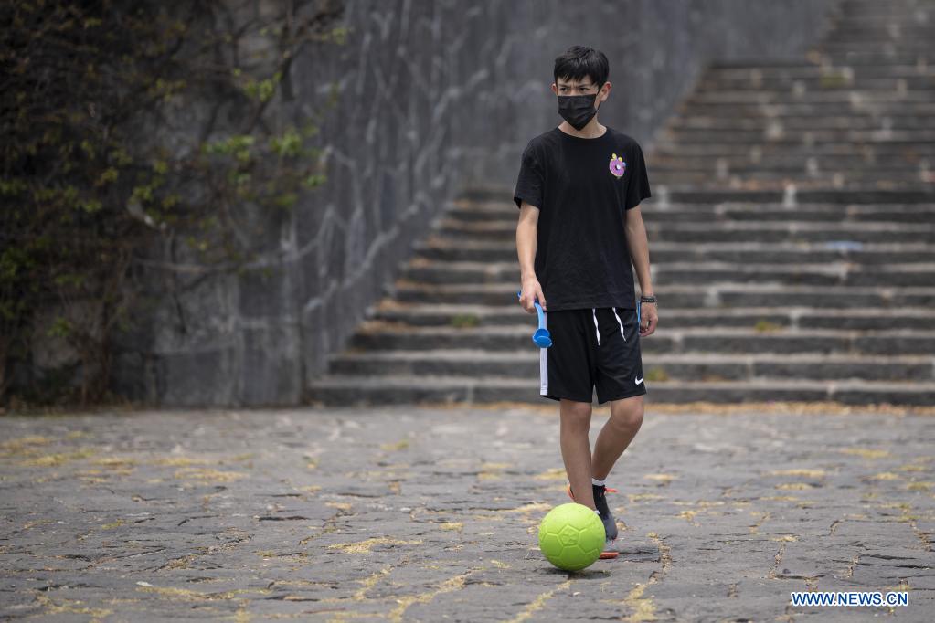 CIUDAD DE MEXICO, 30 abril, 2021 (Xinhua) -- Un niño juega con un balón en el marco del Día del Niño, en la Ciudad de México, capital de México, el 30 de abril de 2021. (Xinhua/Luis Licona)