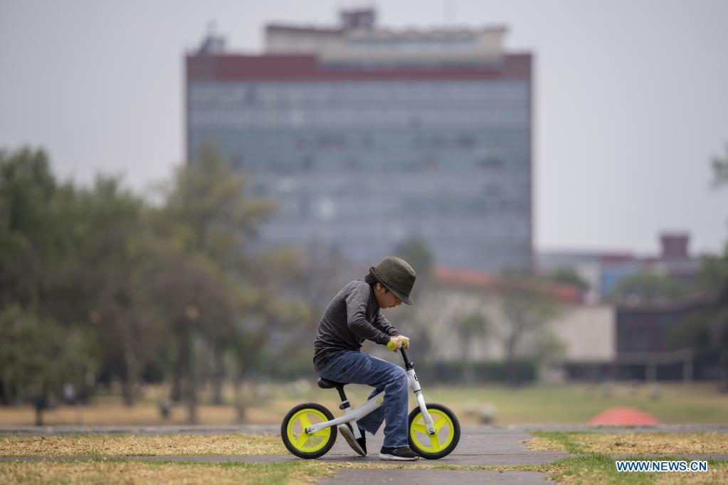 CIUDAD DE MEXICO, 30 abril, 2021 (Xinhua) -- Un niño monta una bicicleta en el marco del Día del Niño, en la Ciudad de México, capital de México, el 30 de abril de 2021. (Xinhua/Luis Licona)