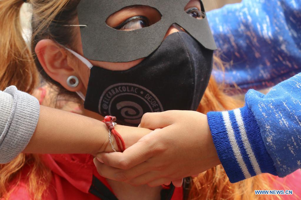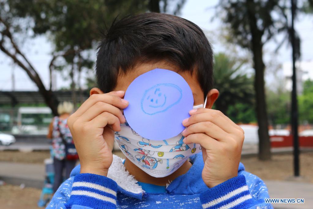CIUDAD DE MEXICO, 30 abril, 2021 (Xinhua) -- Un niño se cubre el rostro durante un encuentro realizado por integrantes de la asociación "El Caracol" para niños en situación de calle en el marco del Día del Niño, en la Ciudad de México, capital de México, el 30 de abril de 2021. (Xinhua/Silvana Flores)