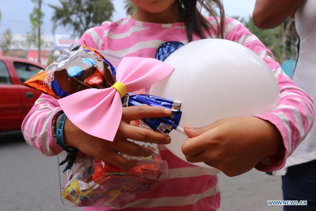 CIUDAD DE MEXICO, 30 abril, 2021 (Xinhua) -- Una niña sostiene dulces durante un encuentro realizado por integrantes de la asociación "El Caracol" para niños en situación de calle en el marco del Día del Niño, en la Ciudad de México, capital de México, el 30 de abril de 2021. (Xinhua/Silvana Flores)
